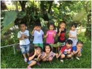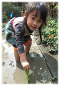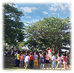圍圈做晨頌並給予愛的擁抱。大自然以歌聲開始一天的心情,以歌聲結束一天的學習。
