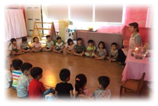 『圓』溫柔的圍著孩子,有安定心靈作用,每天早晨老師會帶著孩子們一起